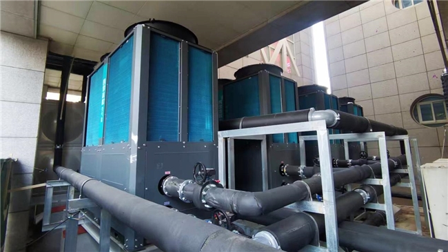 在节能技术路线策划上,采用高能效的四季沐歌空气能热泵替代燃气锅炉,配置了四季沐歌4台330kW、2台160kW空气源热泵冷暖机,另有4台190kW空气源热泵热水机,供暖和热水温度可吻合医院20000㎡供暖、日均120t生存热水需求;关于有高温热水消毒需求的手术室、食堂等特殊区域,供热系统耦合蒸汽蒸发器,达成多能源长处互补,达成场景化高效供热;在建筑制冷领域,整合利旧原有的冷水泵、冷却塔设备。改造后的医院以热泵为主力热源,耦合多种清洁能源,构成覆盖全院区的冷暖、热水、蒸汽综合能源系统。
